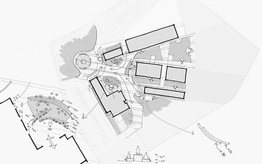 The campus is organized by a pedestrian promenade that stretches across the entire site from the east staff parking lot to west sports parking lot and connects the Multi-Purpose/Community Building (“The Pavilion”) to the rest of the campus. The Administration/Library/Food Service Building sits in the center of the campus and is the central point for group activities on site. Specialty spaces for art, science, band, choir, and special education are distributed throughout the campus.
